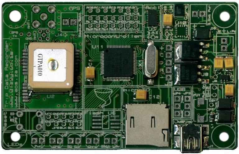 stove (some of the larger components were assembled manually using a soldering iron). Of special significance are the gyroscope and accelerometer at the top-right - these are impossible to mount using a soldering iron.