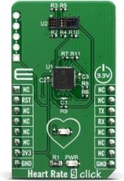 The Heart Rate 9 click is supported by a mikroSDK compliant library, which includes functions that simplify software development. This Click board™ comes as a fully tested product, ready to be used on a system equipped with the mikroBUS™ socket.