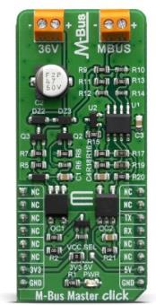 The M-Bus Master is a Click board™ is complete solution for a master node in M-Bus networks. The M-Bus ("Meter-Bus") is a new European standard for remote reading of heat meters and it is also usable for all other types of consumption meters as well as for various sensors and actuators. Given all the features these elements offer, the M-Bus Master click can be used for low cost applications, and low voltage, MCU based, single supply applications.