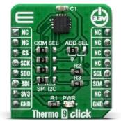 Thermo 9 Click is a Click board™ equipped with the TSYS01, a digital temperature sensor from TE Connectivity. Given its main features, the Thermo 9 Click, can be used for industrial control, replacement of thermistors and NTCs, heating/cooling systems, and HVAC.