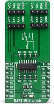 The UART Mux click is supported by a mikroSDK compliant library, which includes functions that simplify software development. This Click board™ comes as a fully tested product, ready to be used on a system equipped with the mikroBUS™ socket.