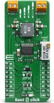 The Boost 6 click is supported by a mikroSDK compliant library, which includes functions that simplify software development. This Click board™ comes as a fully tested product, ready to be used on a system equipped with the mikroBUS™ socket.