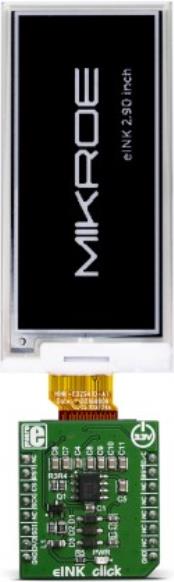 eINK click is supported by a mikroSDK compliant library, which includes functions that simplify software development. This Click board™ comes as a fully tested product, ready to be used on a system equipped with the mikroBUS™ socket.