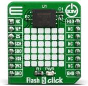 The Flash 5 click is supported by a mikroSDK compliant library, which includes functions that simplify software development. This Click board™ comes as a fully tested product, ready to be used on a system equipped with the mikroBUS™ socket.