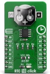 RTC 10 click is supported by a mikroSDK compliant library, which includes functions that simplify software development. This Click board™ comes as a fully tested product, ready to be used on a system equipped with the mikroBUS™ socket.