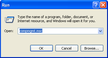 - Run "Computer Management" by clicking "Start -> Run", typing "compmgmt.msc" in the dialog box and then clicking ok.