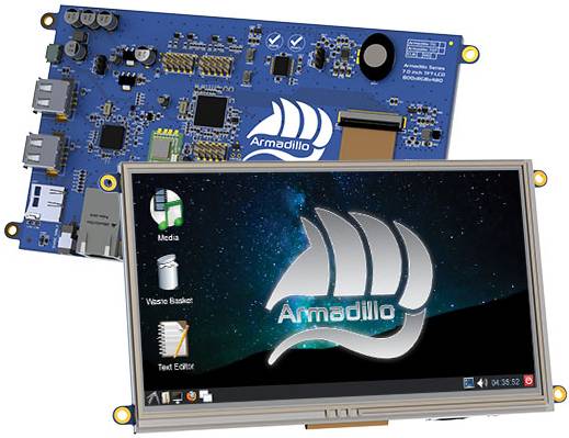 Armadillo-70T (Raspberry Pi) The Armadillo-70T is a complete Linux based computer module with built-in 800x480 resolution TFT LCD display. The board is designed to be a Raspberry Pi with built-in display, and features the same Broadcom BCM2835 System-On-Chip (SoC) which is found on the Pi.