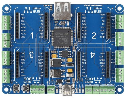 Quail is produced by MikroElektronika, but the idea and design of the board was done by MikroBUS.NET, a team of software and hardware professionals from France.