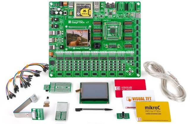 mikroLab for FT90x mikroLab for FT90x is a toolkit for developing with FTDI Chip's FT90x line of MCUs. The kit contains an Easy FT90x board, a mikroC for FT90x compiler license, additional accessories, and a free VisualTFT license.