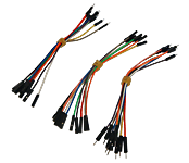 Male-to-male, male-to-female and female-to-female wire jumpers. These facilitate easy connections between pads on prototype-/bread-boards.