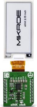 Is an adapter Click board™, used to interface a compatible eINK display with the host MCU. The most distinctive feature of the eINK displays is their very low power consumption and the ability to retain the information, even after disconnecting from the power source. The power is consumed only when the display content is changing. For all displays Mikroe provides compliant library to start with.