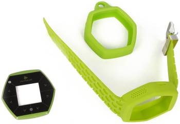 Hexiwear can be outfitted according to your preferences; with black, blue, green or yellow wristbands, soft-covers and front masks.