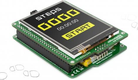 The touchscreen displays number of steps and duration of walking. Message “no movement†is written when there is no movement. Also, the interface has START and STOP button. Algorithm samples the accelerometer data every 0.5 seconds as you walk, and dynamically adapts the threshold.