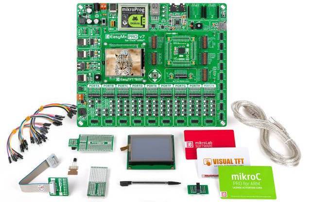 mikroLab for Tiva is a tookit for developing with Texas Instrument's Tiva C Series MCUs. The kit contains an EasyMx PRO v7 for Tiva C Series board, a mikroC for ARM compiler license, additional accessories, and a free VisualTFT license.