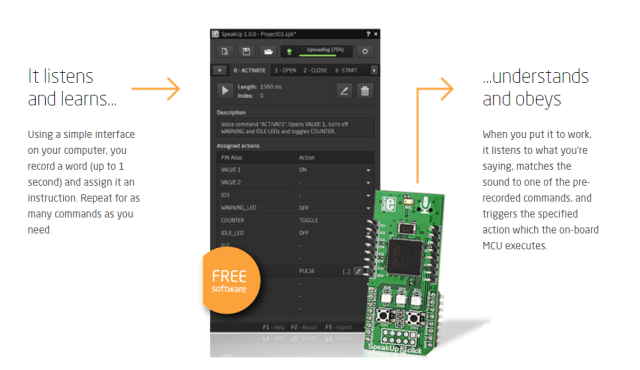 . Set it up to recognize up to 100 commands and have the onboard MCU carry them out instantly.