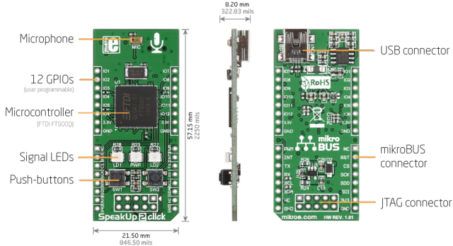 SpeakUp 2 click is a speech recognition click board with a simplified design compared ot the original
