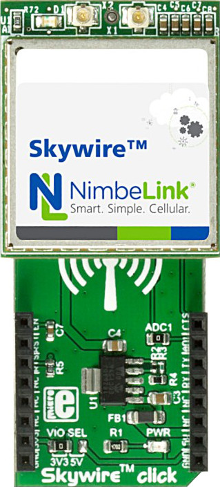 /Skywire™ cellular modems (using stacking headers) to MikroElektronika development boards. It carries the