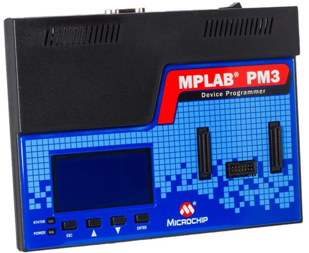 The MPLAB® PM3 Universal Device Programmer is easy to use and operates with a PC or as a stand-alone unit, and programs Microchip's entire line of PIC® devices as well as the latest dsPIC® DSC devices. When used standalone, data can be loaded and saved with the SD/MMC card (not included).