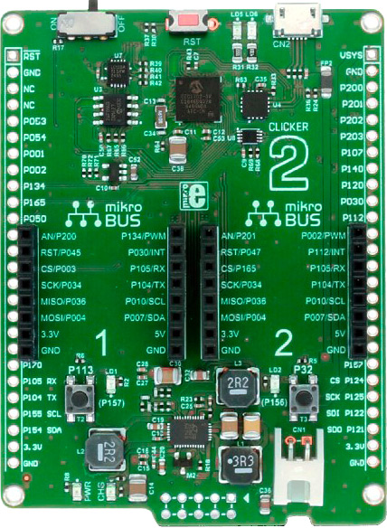 A compact development board with two mikroBUS™ sockets and your favorite microcontroller. Unleash your imagination.