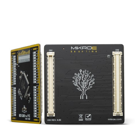 MCU Card is a standardized add-on board, which allows very simple installation and replacement of the microcontroller unit (MCU) on a development board equipped with the MCU Card socket. By introducing the new MCU Card standard, we have ensured the absolute compatibility between the development board and any of the supported MCUs, regardless of their pin number and compatibility. MCU Cards are equipped with two 168-pin mezzanine connectors, allowing them to support even MCUs with extremely high pin count. Their clever design allows very simple usage, following the well-established plug & play concept of the Click board™ line of product.