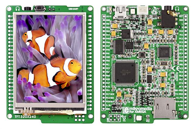 mikroMedia for XMEGA mikroMedia for XMEGA is a compact, high-quality, multimedia development platform for XMEGA devices (comes with the ATxmega128A1). It has numerous on-board modules which allow you to write multimedia applications. This board can be used for both development or as a final product.