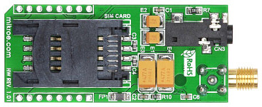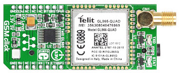 GSM Click is an add-on board in the mikroBUS form factor and is a perfect solution for adding a GSM/GPRS communication layer to your device. It features the Telit GL865-QUAD GSM/GPRS module which supports GSM/GPRS 850/900/1800/1900 MHz Quad-band frequency. The board contains a TXB0106 6-bit bidirectional voltage-level translator as well as a SIM card socket. GSM Click communicates with the target microcontroller via seven mikroBUS lines (RX, TX, INT, PWM, CS, RST and AN). The board uses a 3.3V power supply, but can communicate at either 3.3V or 5V voltage levels (selection by SMD jumper). An LED diode indicates the presence of power supply. |