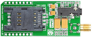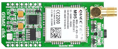 GSM2 Click is a perfect solution for adding a GSM/GPRS communication layer to your device. It features the Quectel M95 GSM/GPRS module which supports GSM850MHz, GSM900MHz, DCS1800MHz or PCS1900MHz quad-band frequencies with 85.6 kbps GPRS data transfer. The board is designed in the mikroBUS form factor and contains quadrupole audio/microphone jack, SMA antenna connector and a SIM card socket. GSM Click communicates with the target microcontroller via seven mikroBUS lines (RX, TX, INT, PWM, CS, RST and AN). The board uses a 5V power supply, but can communicate at either 3.3V or 5V voltage levels (selection by SMD jumper). An LED diode indicates the presence of power supply. |