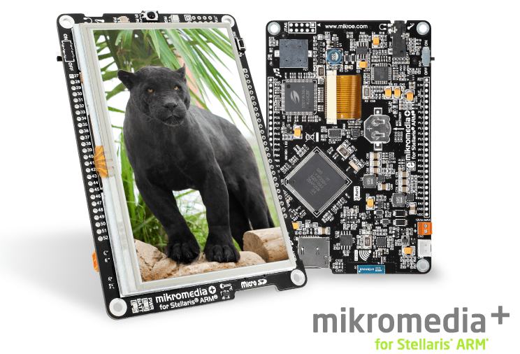 A large 4.3" TFT Touch Screen and over 20 on-board modules connected to a high-performance Stellaris ARM Cortex-M4 microcontroller with on-chip FPU and DSP.